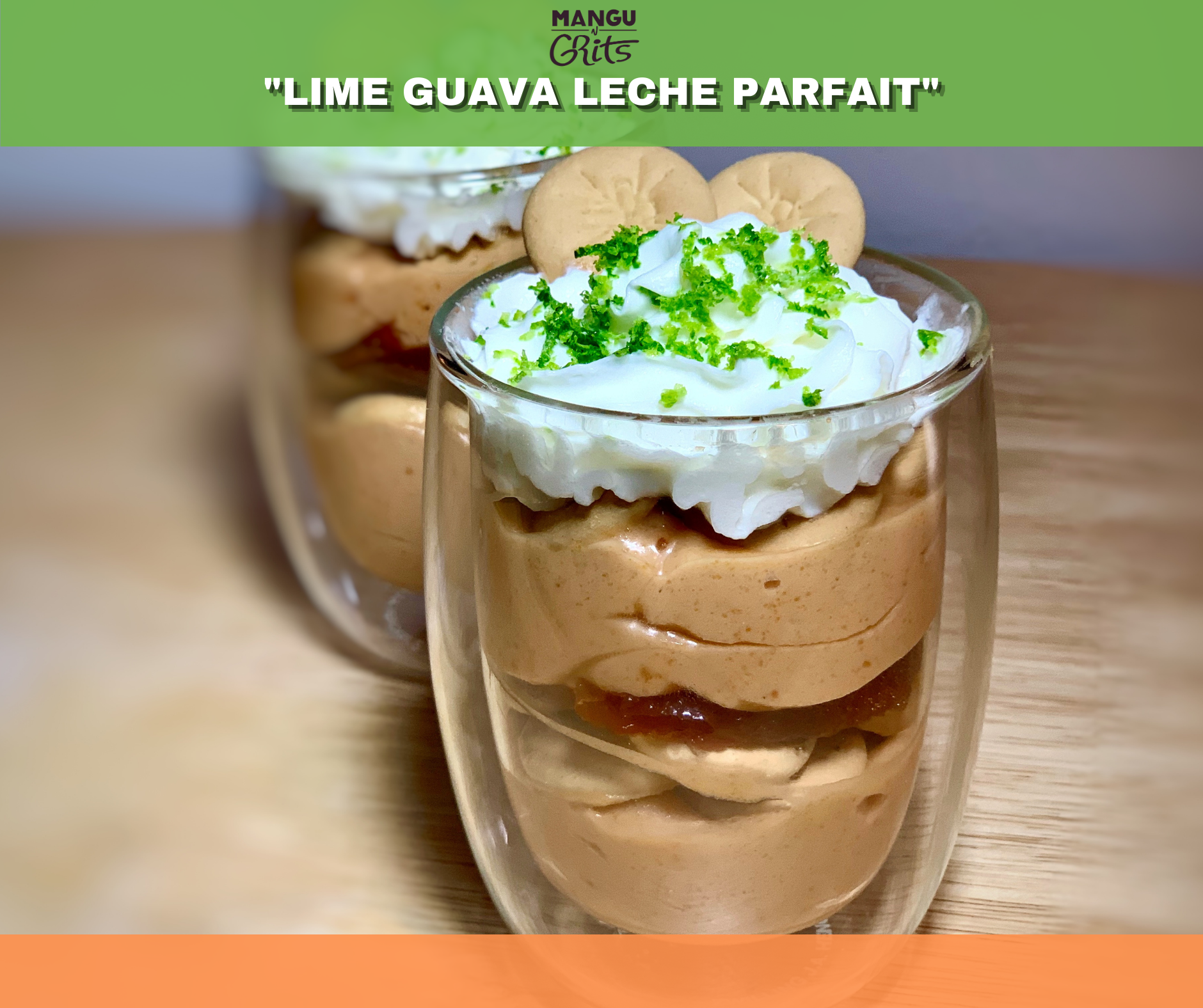 Take two dessert glasses, layer 25% of the mousse mix into the bottom of each dessert glass to form a base layer for your parfait. For the second layer add 4 to 5 cookies to each glass. Then, for your third layer, divide 1/4 cup of guava paste evenly between the two glasses. For your fourth layer, divide the remaining mousse evenly. For your fifth layer, add 4 to 5 cookies to each glass. For your last/sixth layer, mix or hand whip your 1/2 cup heavy whipping cream and 1/4 teaspoon of confectioner’s sugar to make a simple whipped cream. Finish with lime zest and serve immediately.